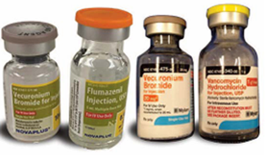 Một số nhân viên y tế đã báo cáo mối quan ngại về sự giống nhau của lọ thuốc Novaplus (flumazenil) 0,5 mg/ 5 mL và vecuronium 10 mg sau khi gỡ bỏ nắp màu (Hình 1, bên trái). Ngoài ra, cả 2 lọ đều có thể được tồn trữ trong tủ trực ở khu vực thực hiện thủ thuật, dẫn tới làm tăng nguy cơ nhầm lẫn. Một ví dụ khác, màu sắc và hình dáng nhãn tương tự dẫn đến sự giống nhau của lọ vecuronium 20 mg và vancomycin 1 g (Hình 1, bên phải), đặc biệt là khi đã tháo nắp. Cả hai đều chứa bột đông khô màu trắng cần phải hoàn nguyên trước khi sử dụng [7].