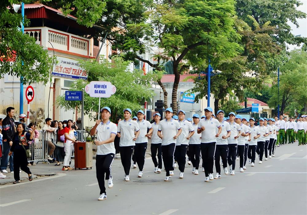 Đoàn vận động viên của Bệnh viện Đa khoa Hải Dương tham dự giải chạy tập thể của Phường Lê Thanh Nghị năm 2025