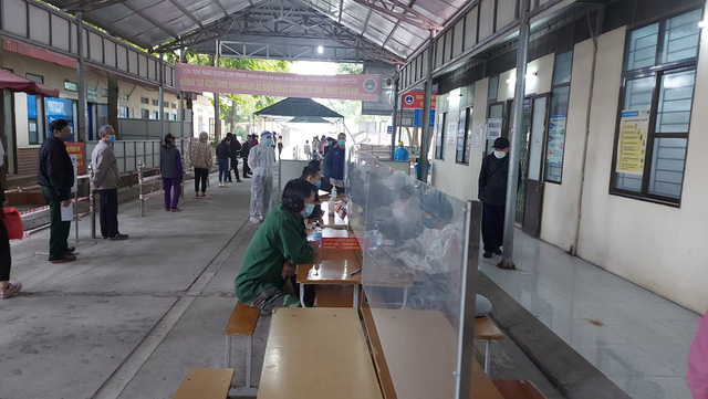 Tại nơi đón tiếp, hệ thống phân luồng bằng dây được sử dụng để tạo nên những lối đi một chiều. Các nhân viên đeo loa hướng dẫn người dân duy trì đúng khoảng cách, đeo khẩu trang đúng quy định.