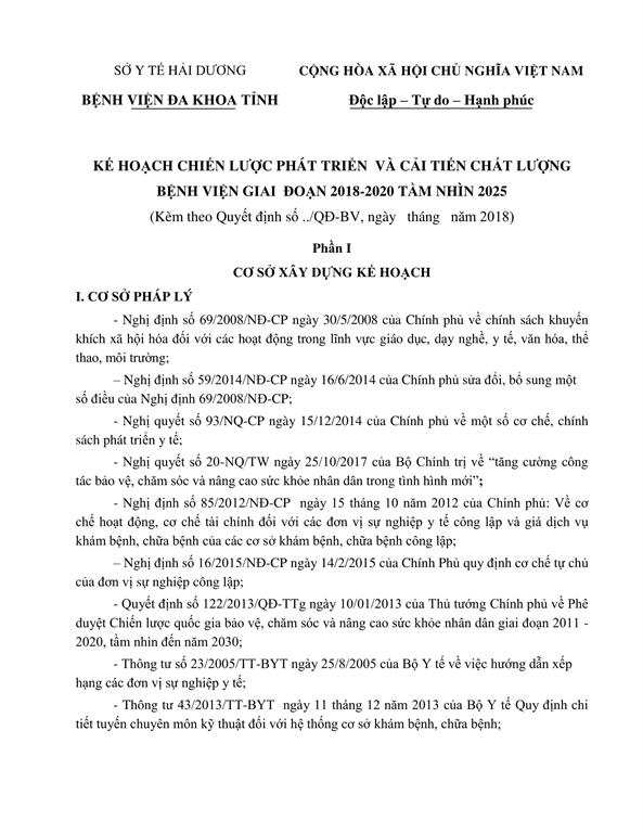 Bệnh viện đa khoa tỉnh Hải Dương công bố " Kế hoạch chiến lược phát triển và cải tiến chất lượng bệnh viện giai đoạn 2018-2020 tầm nhìn 2025