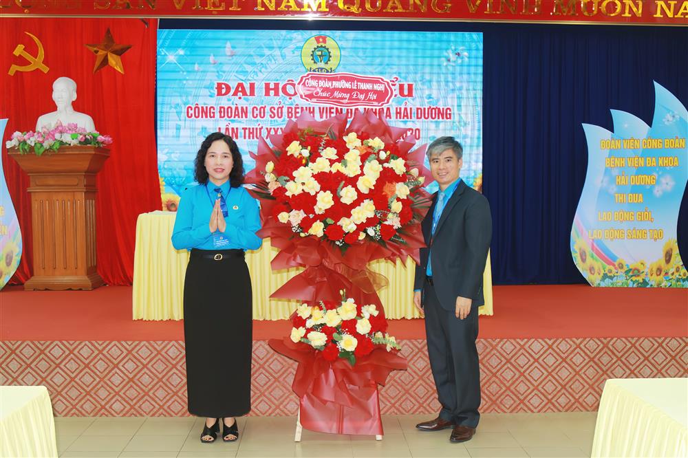 Phát biểu tại Đại hội, đồng chí Nguyễn Thị Ngân – Chủ tịch Công đoàn phường Lê Thanh Nghị ghi nhận và biểu dương những thành tích nổi bật của Công đoàn Bệnh viện trong nhiệm kỳ qua. Đồng chí đề nghị Ban Chấp hành nhiệm kỳ mới tiếp tục phát huy truyền thống đoàn kết, chủ động nghiên cứu, khắc phục hạn chế, đổi mới phương thức hoạt động, quan tâm hơn nữa đến đời sống tinh thần, vật chất cho đoàn viên, làm tốt công tác giáo dục y đức, xây dựng các chương trình hành động thiết thực, đa dạng hóa hình thức sinh hoạt công đoàn phù hợp với từng giai đoạn phát triển của Bệnh viện.