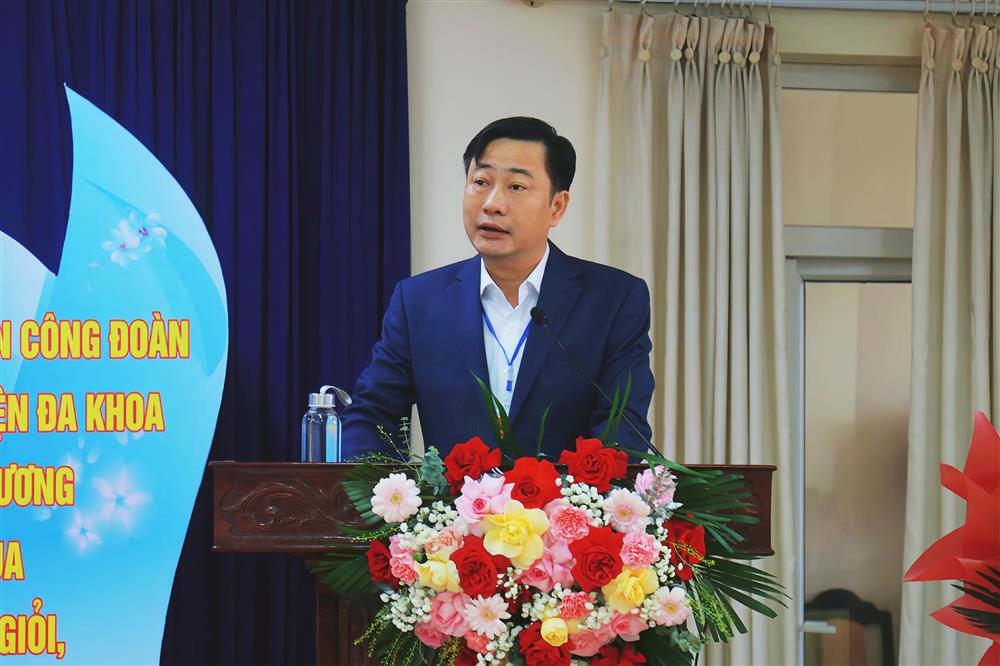 Thay mặt lãnh đạo Bệnh viện, TS.BS Vũ Minh Hiệp – Giám đốc Bệnh viện phát biểu chúc mừng thành công của Đại hội và ghi nhận vai trò tích cực của Công đoàn trong việc tạo không khí thi đua sôi nổi, chăm lo tốt chế độ, khen thưởng cho cán bộ, viên chức. Đồng chí nhấn mạnh, nhiệm kỳ mới cần tiếp tục phát huy truyền thống, làm tốt vai trò bảo vệ quyền lợi người lao động, nâng cao chất lượng hoạt động công đoàn, góp phần thực hiện tốt nhiệm vụ chính trị, chăm sóc sức khỏe nhân dân, nâng cao đời sống cán bộ, viên chức.