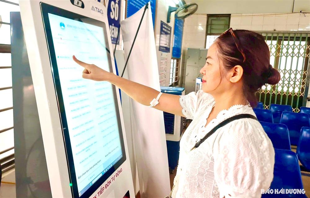 Trước đó, đầu tháng 10/2024, Bệnh viện Đa khoa tỉnh Hải Dương đã triển khai Kiosk đăng ký khám bệnh tự động sử dụng căn cước công dân gắn chip và ứng dụng thanh toán viện phí qua QR code tự động. Chỉ bằng thao tác nhấn màn hình đơn giản, chưa tới 1 phút người bệnh có thể hoàn thành thủ tục đăng ký khám bệnh.