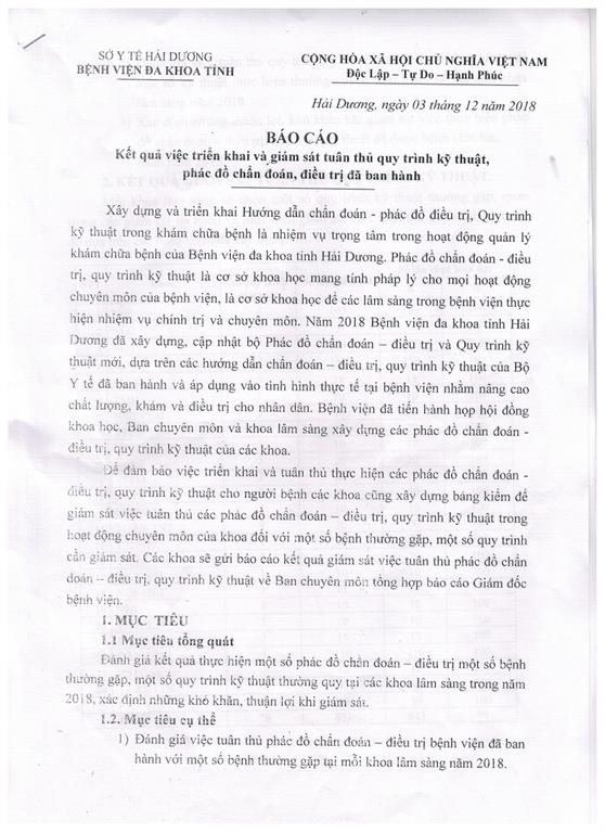 Kết quả triển khai và giám sát tuân thủ quy trình kỹ thuật, phác đồ chẩn đoán, điều trị đã ban hành