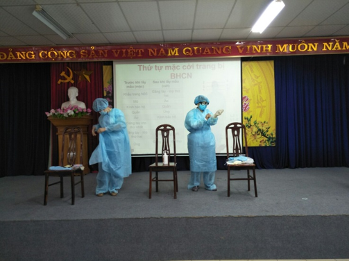 Lớp tập huấn được các đồng chí giảng viên chia sẻ lý thuyết, sau đó được thị phạm bằng xem Video, tiếp đó giảng viên làm mẫu, mời học viên lên thực hành. Với phương pháp tập huấn kết hợp giữa lý thuyết và thực hành, với tinh thần nghiêm túc, trách nhiệm tất cả các đồng chí dự tập huấn đã tiếp thu cơ bản kiến thức về phòng chống dịch, đồng thời thực hành khá thành thạo các quy trình về rửa tay thường quy, mặc và cởi các phương tiện phòng hộ cá nhân để tạo hành trang tốt nhất nhằm chủ động, sẵn sàng cùng với Bệnh viện tham gia phòng chống dịch Corona hiệu quả.