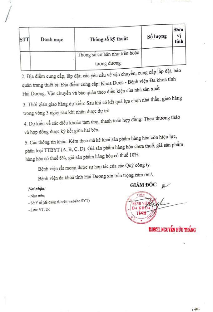 Bệnh viện Đa khoa tỉnh Hải Dương có nhu cầu tiếp nhận báo giá để tham khảo, xây dựng giá gói thầu, làm cơ sở tổ chức nhà thầu cho gói thầu Cung ứng vật tư y tế, hóa chất gói chỉ định thầu rút gọn và chào hàng cạnh tranh trong thời gian chờ kết quả đấu thầu 12 tháng năm 2023-2024.