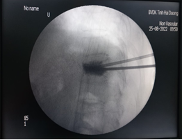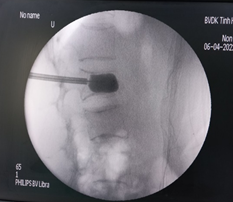 Bước 6: Để chắc chắn xi măng sinh học chỉ khu trú trong thân đốt sống, bác sĩ sẽ kiểm tra bằng C-arm hai bình diện thêm một lần nữa.