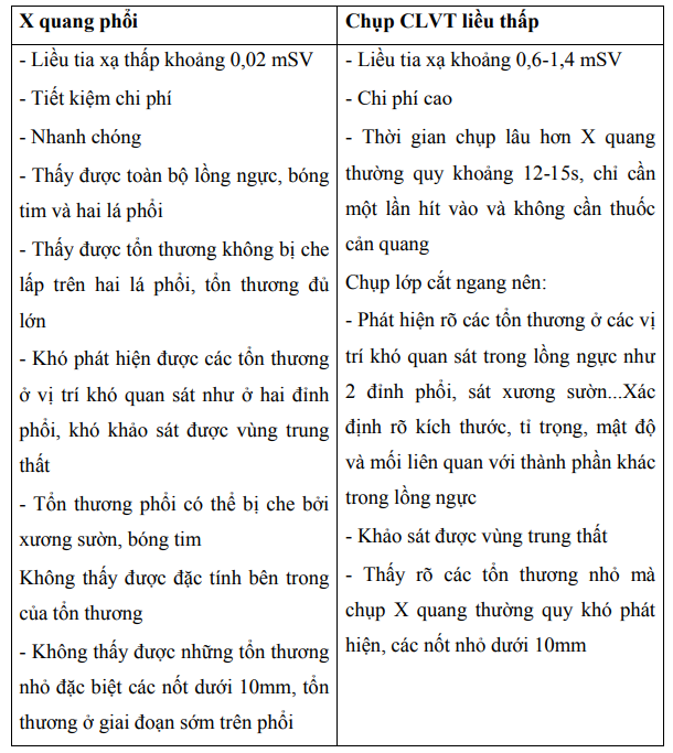 Sự khác biệt của X quang phổi thường quy và chụp CLVT liều thấp