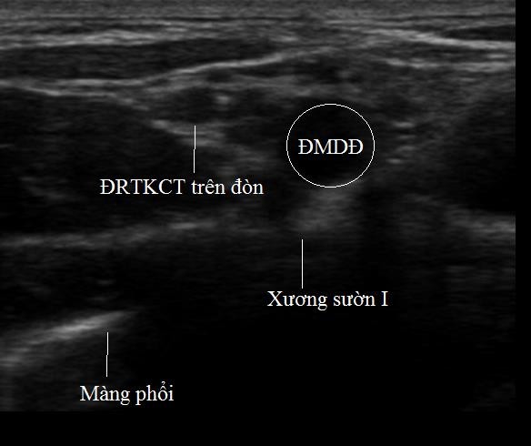 - Đăṭ đầu dò ngay phía trên điểm giữa xương đòn.
