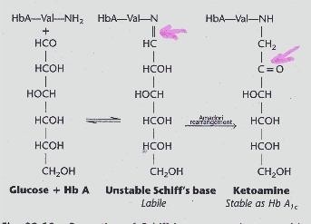 HbA1c là sản phẩm của quá trình glycosyl giữa phân tử glucose và nhóm amin tại vị trí valine có nhóm amin đầu tận cùng chuỗi beta của hemoglobin. Đặc điểm của quá trình này là không cần năng lượng cũng như xúc tác của enzym mà chỉ phụ thuộc vào nồng độ glucose máu.