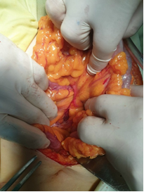 Trong quá trình phẫu thuật kiểm tra ổ bụng các quai ruột giãn, khoảng 1m hỗng tràng đầu tiên nằm chui toàn bộ trong túi thoát vị sau mạc treo tràng dưới. Sau khi được giải phóng, đoạn ruột thoát vị không thấy thiếu máu, không thấy bất thường về giải phẫu của đại tràng ngang cũng như đại tràng xuống. Sau đó túi thoát vị được khâu kín lại bằng chỉ Vicryl 3/0 giữa cổ túi và quai hỗng tràng đầu tiên. Chúng tôi không đặt dẫn lưu. Bệnh nhân trung tiện vào ngày thứ 2 và ra viện sau 7 ngày mà k có biến chứng gì bất thường.
