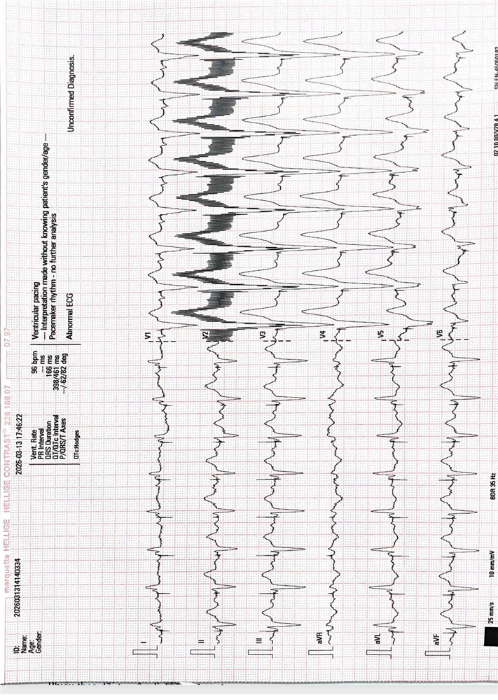 Hình 3: Điện tâm đồ sau đặt máy tạo nhịp vĩnh viễn