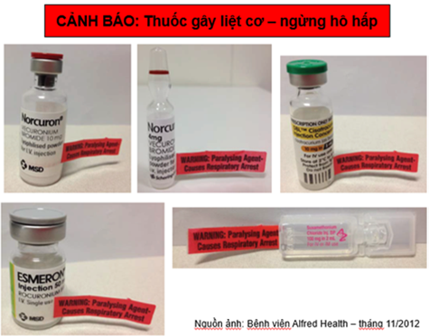 Hình 4. Ví dụ hình ảnh dán nhãn cảnh báo cho các thuốc phong bế thần kinh – cơ [6]