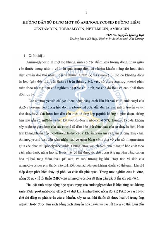 Hướng dẫn sử dụng một số AMINOGLYCOSID đường tiêm