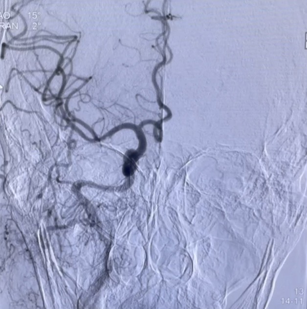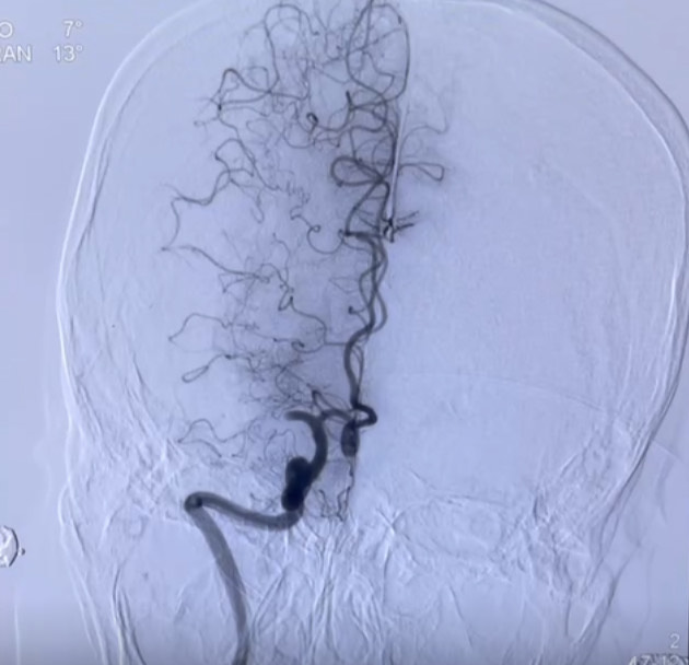 Điển hình là trường hợp bệnh nhân nữ L.T.N 69 tuổi, tiền sử khỏe mạnh, vào viện khoa Cấp cứu ngày 11/4/2025 vì lý do ý thức chậm, nói khó, méo miệng, liệt vận động hoàn toàn nửa người trái giờ thứ 3. Ngay sau khi tiếp nhận thông tin, bác sĩ trực và kíp can thiệp khoa Đột quỵ đã có mặt tại khoa Cấp cứu tiến hành thăm khám đánh giá bệnh nhân, kết hợp hình ảnh chụp CLVT sọ não và điện tim đồ bệnh nhân được chẩn đoán: Nhồi máu não cấp giờ thứ 4 do tắc động mạch não giữa bên phải/ Rung nhĩ. Xác định đây là trường hợp huyết khối tắc mạch lớn cần phải phối hợp các phương pháp điều trị, bác sĩ trực đã giải thích gia đình và tiến hành sử dụng thuốc tiêu sợi huyết đường tĩnh mạch đồng thời đẩy thẳng bệnh nhân lên phòng can thiệp mạch cấp cứu. Hình ảnh chụp mạch não số hóa xóa nền DSA cho thấy bệnh nhân bị tắc hoàn toàn động mạch não giữa bên phải. Kíp can thiệp đã triển khai phương pháp tái thông mạch não bằng dụng cụ cơ học. Kết quả, sau 02 lần hút đã tái thông hoàn toàn động mạch não giữa bên phải đạt mức TICI 3. Hiện tại ngày thứ 10 sau can thiệp, tình trạng bệnh nhân ổn định: Ý thức tỉnh G15đ, nói rõ, liệt nhẹ VII TW bên trái, liệt nửa người trái cải thiện tốt.