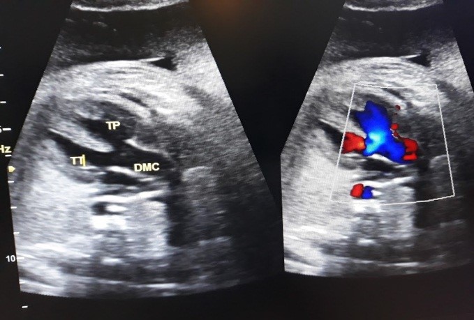 + Siêu âm thai: Thai 27 tuần, giãn não thất, dịch màng phổi 2 bên, nghi ngờ bất thường tim, thiểu ối.