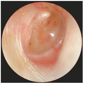 Khám soi tai: (phóng đại) điển hình là màng tai có màu hổ phách, có các vân mạch, thường co lõm nhưng đôi khi màng tai lồi phồng. Hình ảnh màng tai rất đa dạng, có thể thấy: