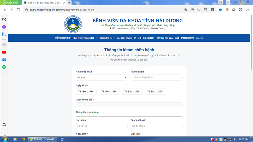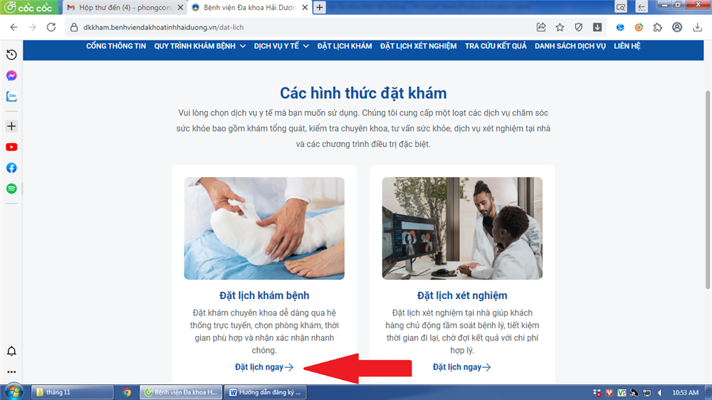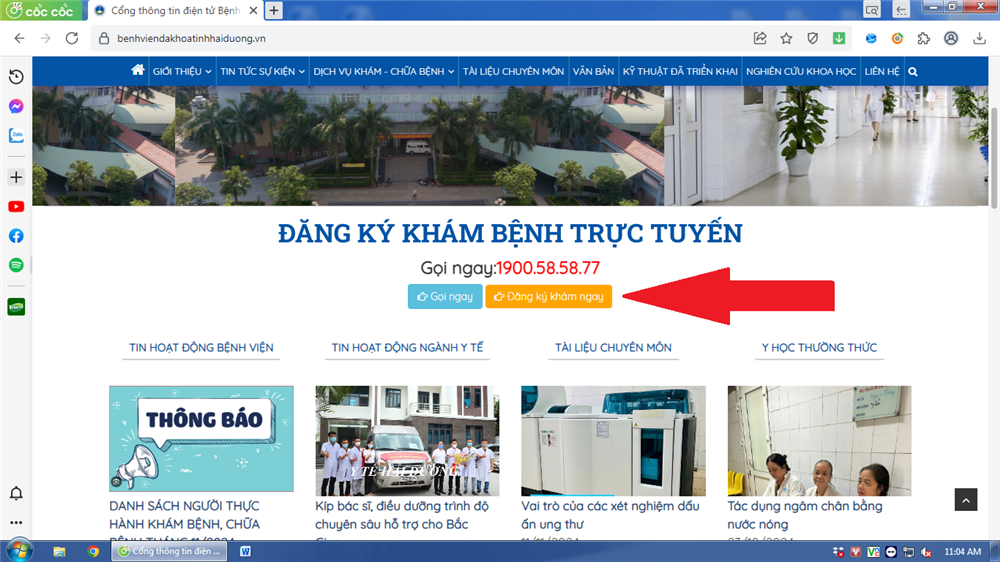 * CÁCH 2: Đăng ký qua Website Bệnh viện Đa khoa tỉnh Hải Dương.