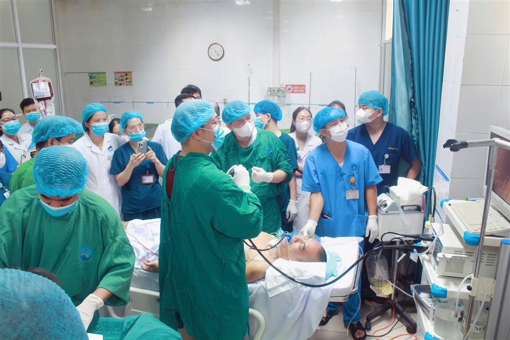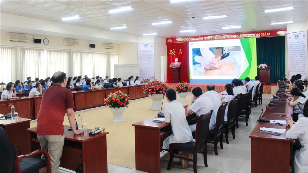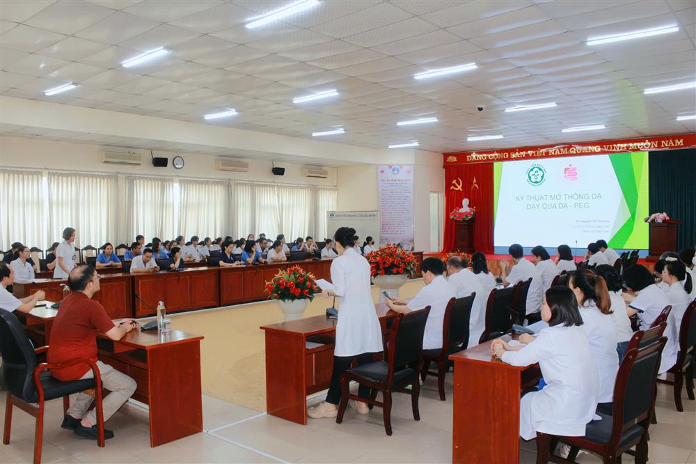 Chương trình tập huấn được triển khai thành hai phần: Tập huấn lý thuyết về kỹ thuật mở thông dạ dày qua da dưới hướng dẫn nội soi và Thực hành lâm sàng trực tiếp tại Khoa Thăm dò chức năng. Nhờ đó, các bác sĩ không chỉ được trang bị kiến thức mà còn có cơ hội áp dụng thực tế ngay trên bệnh nhân, giúp củng cố kỹ năng một cách toàn diện.