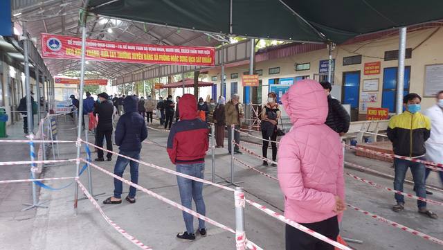 Tại nơi đón tiếp, hệ thống phân luồng bằng dây được sử dụng để tạo nên những lối đi một chiều. Các nhân viên đeo loa hướng dẫn người dân duy trì đúng khoảng cách, đeo khẩu trang đúng quy định.