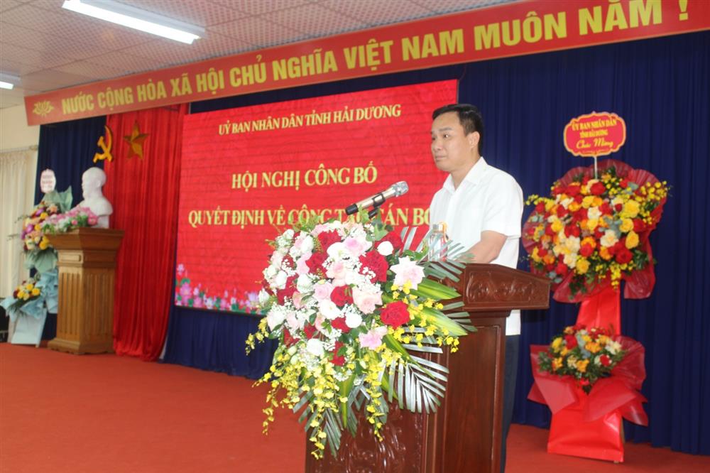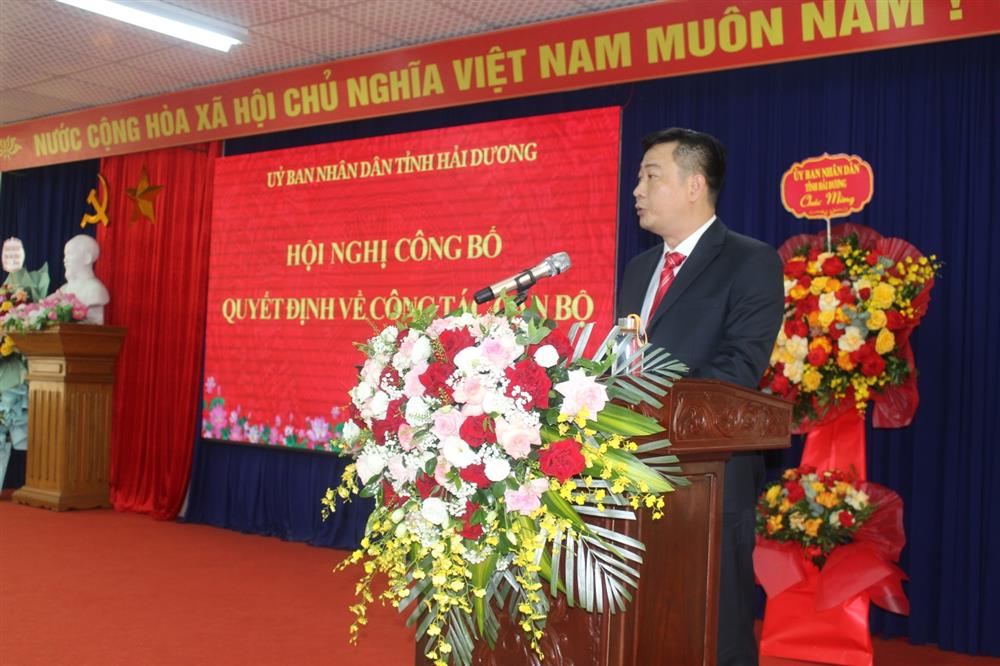 Tiến sĩ, Bác sĩ Vũ Minh Hiệp, Tân Giám đốc Bệnh viện Đa khoa tỉnh Hải Dương phát biểu tại Hội nghị.