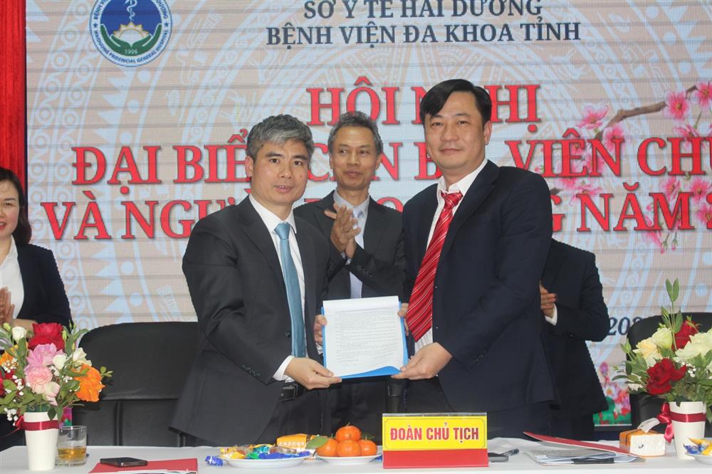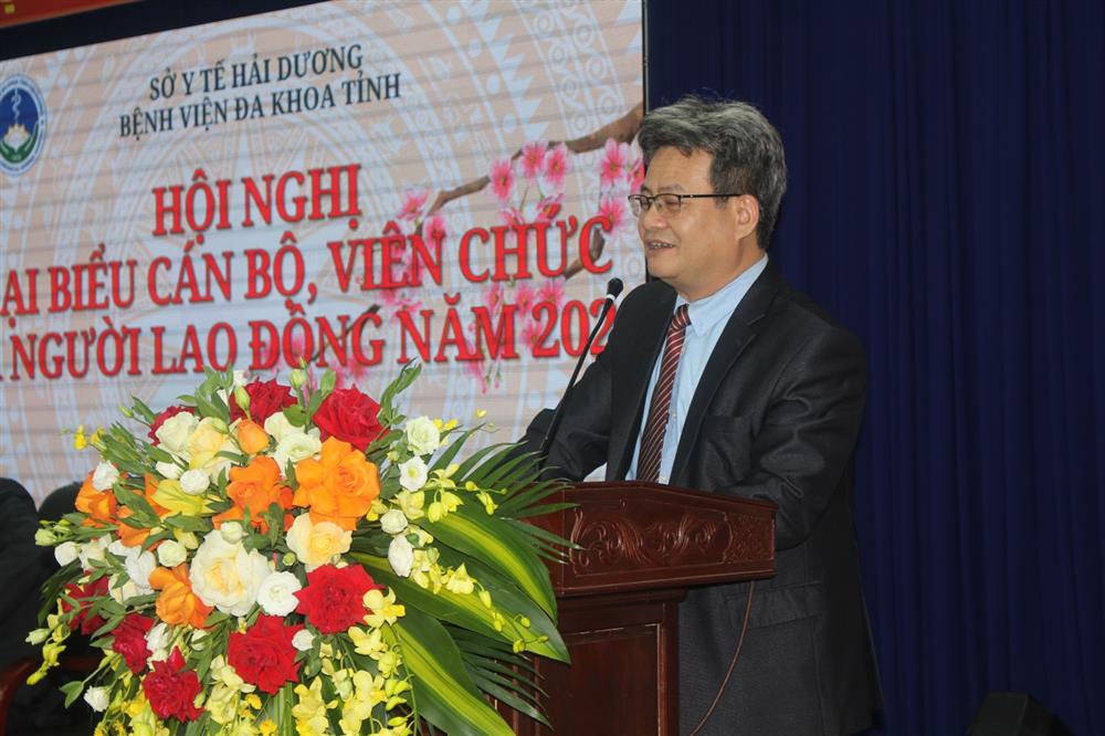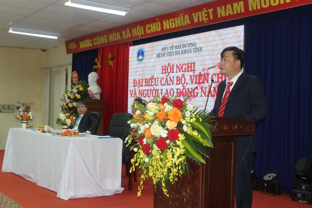 Thay mặt Hội nghị, TS.BS Vũ Minh Hiệp –Bí thư Đảng uỷ, Giám đốc Bệnh viện Đa khoa tỉnh Hải Dương gửi lời cảm ơn đến lãnh đạo Sở Y tế, Công đoàn ngành Y tế tỉnh đã luôn quan tâm chỉ đạo kịp thời, luôn tạo điều kiện để Bệnh viện phát huy hết khả năng của mình và mong rằng thời gian tới sẽ tiếp tục nhận được sự quan tâm chỉ đạo để Bệnh viện hoàn thành các mục tiêu đề ra. TS.BS Vũ Minh Hiệp cũng chỉ đạo và động viên toàn thể Cán bộ, viên chức, người lao động tại Bệnh viện dù ở vai trò nào cũng sẽ nỗ lực không ngừng vì sự phát triển chung của Bệnh viện, vì sự hài lòng của người bệnh và người dân, xứng đáng là địa chỉ tin cậy của nhân dân trong tỉnh.