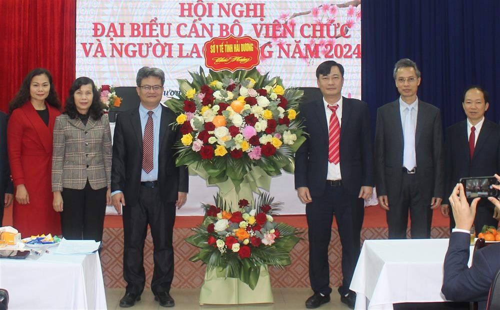 Lãnh đạo Sở Y tế Hải Dương tặng hoa chúc mừng Hội nghị Đại biểu cán bộ viên chức người lao động Bệnh viện Đa khoa tỉnh Hải Dương năm 2024