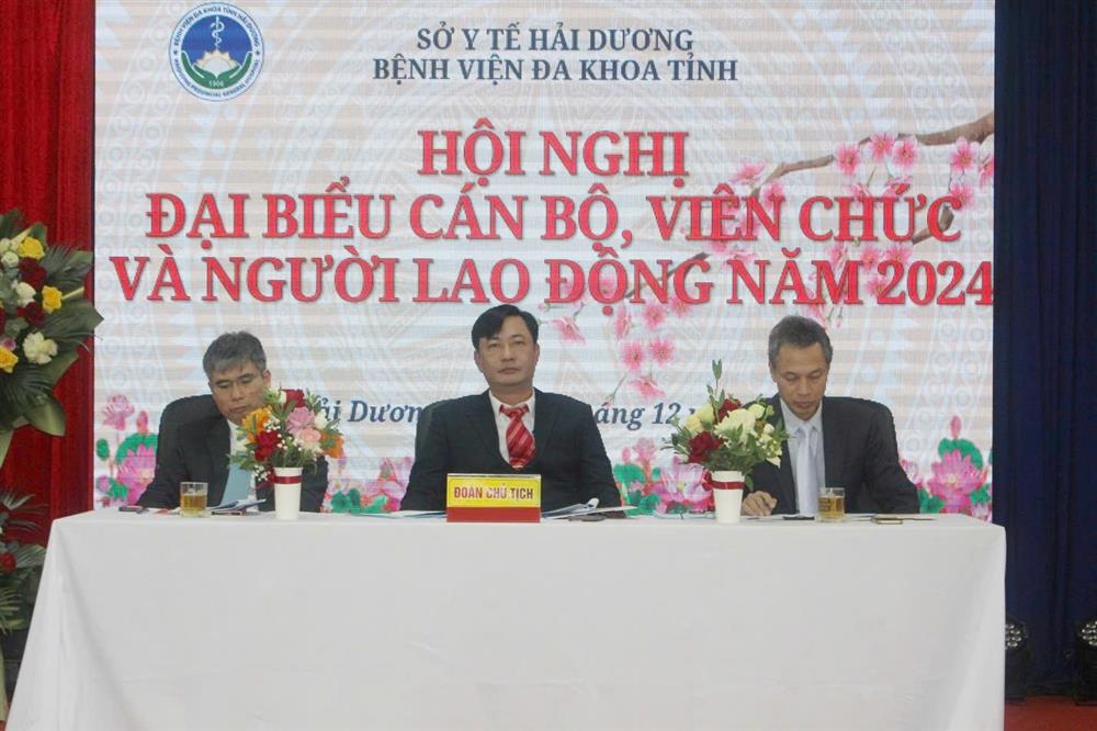 Theo đó, Hội nghị Đại biểu cán bộ, viên chức năm 2024 của Bệnh viện Đa khoa tỉnh Hải Dương tổ chức nhằm báo cáo tổng kết đánh giá các hoạt động của Bệnh viện năm 2024 và phương hướng triển khai nhiệm vụ năm 2025. Tham dự Hội nghị có Đồng chí Trần Quang Cảnh – Giám đốc Sở Y tế Hải Dương, Đồng chí Nguyễn Thị Trung Chính – Phó giám đốc Sở Y tế Hải Dương, Đồng chí Nguyễn Thị Bình – Chủ tịch Công đoàn Ngành Y tế Hải Dương; về phía Bệnh viện có: Đồng chí TS.BS Vũ Minh Hiệp – Bí thư Đảng Ủy, Giám đốc Bệnh viện; Đồng chí TS.BS Lê Quang Đức – Phó Giám đốc Bệnh viện; Đồng chí BSCKII Phạm Văn Huấn – Phó Giám đốc Bệnh viện cùng tập thể Ban chấp hành Đảng bộ, Ban Giám đốc, Ban thường trực cơ quan, Chủ tịch Công đoàn, Bí thư Đoàn Thanh niên, Phó Trưởng ban Thanh tra nhân dân, Trưởng Ban Nữ công và hơn 300 Đại biểu được bầu thuộc các đơn vị trong Bệnh viện.