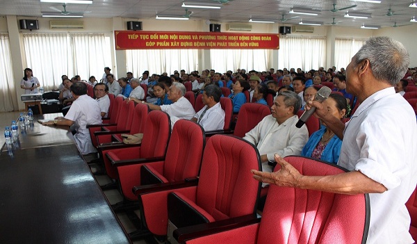 Đến dự và chỉ đạo hội nghị có Thầy thuốc ưu tú, Bác sỹ chuyên khoa II Phạm Xuân Lúy – Phó Giám đốc bệnh viện; Thạc sỹ Vũ Quang Sản – Phó Giám đốc bệnh viện; cùng dự có Trưởng các Phòng chức năng và Điều dưỡng trưởng các trung tâm, khoa, phòng, bộ phận. Thạc sỹ Bác sỹ Nguyễn Hữu Biên – Trưởng khoa Lão khoa trực tiếp truyền đạt nội cơ bản về Luật Bảo hiểm y tế sửa đổi năm 2014 tới trên 260 đại biểu là người bệnh và người nhà người bệnh tham dự tại hội nghị.