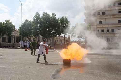Chiều cùng ngày, bệnh viện đã phối hợp với phòng Cảnh sát PCCC và CNCH diễn tập phương án PCCC giả định tại tầng 7 nhà nghiệp vụ 11 tầng. Ngay khi có chuông báo cháy, ban chỉ đạo PCCC và đội PCCC bệnh viện đã nhanh chóng báo cháy cho đội PCCC Công an tỉnh, triển khai lực lượng, phương tiện chữa cháy và có mặt tại hiện trường: sơ tán người, sử dụng bình chữa cháy và các phương tiện tại chỗ dập tắt đám cháy.