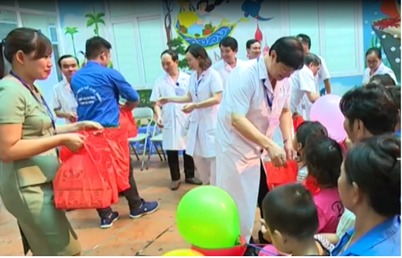 |  Đ/c Nguyễn Hữu Thắng Bí thư Đảng ủy – Giám đốc bệnh viện thăm và tặng quà các bệnh nhi nhân dịp tết Trung Thu năm 2018 | Bên cạnh việc thực hiện tốt công tác khám chữa bệnh, hoạt động chăm sóc và bảo vệ trẻ em cũng luôn được Bệnh viện quan tâm. Hằng năm, vào dịp Tết Thiếu nhi 1/6 và Tết Trung thu “Rằm tháng Tám”, Bệnh viện đều tổ chức nhiều hoạt động thiết thực và ý nghĩa thể hiện sự quan tâm sâu sắc của Đảng ủy, Ban Giám đốc bệnh viện đối với các cháu. |