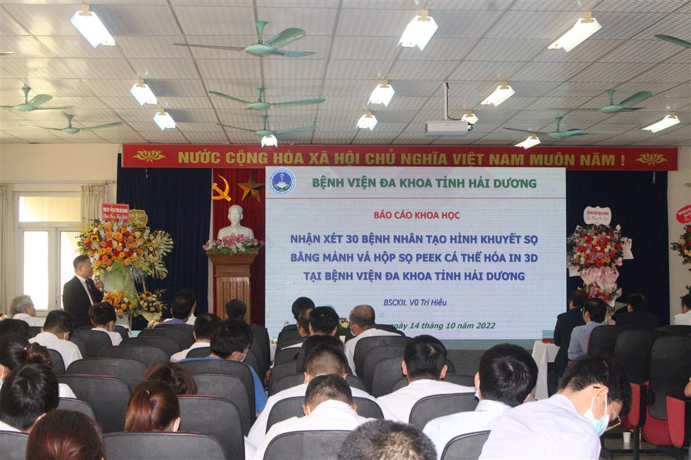 Tại hội nghị, 12 bài Báo cáo khoa học có giá trị chuyên môn cao đã được các PGS.TS của các bệnh viện tuyến TW và các TS.BS thuộc Bệnh viện Đa khoa tỉnh Hải Dương trình bày như: Ứng dụng lâm sàng vạt cánh tay ngoài trong điều trị khuyết hổng phần mềm vùng cổ tay và bàn tay; Tổng quan về kỹ thuật ECMO và ứng dụng trong lâm sàng; Nhận xét 30 bệnh nhân tạo hình khuyết sọ bằng mảnh vá hộp sọ PEEK cá thể hóa in 3D tại BVĐK tỉnh Hải Dương; Thái độ xử trí dạng mạch máu não;…