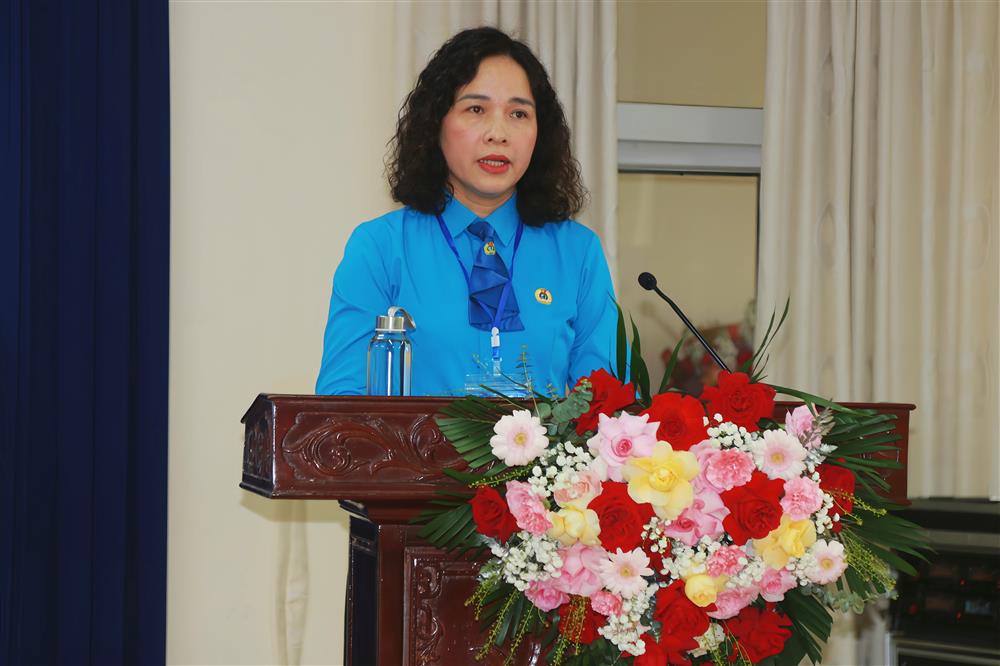 Đồng chí Nguyễn Thị Ngân – Chủ tịch Công đoàn Phường Lê Thanh Nghị phát biểu chỉ đạo tại Đại hội