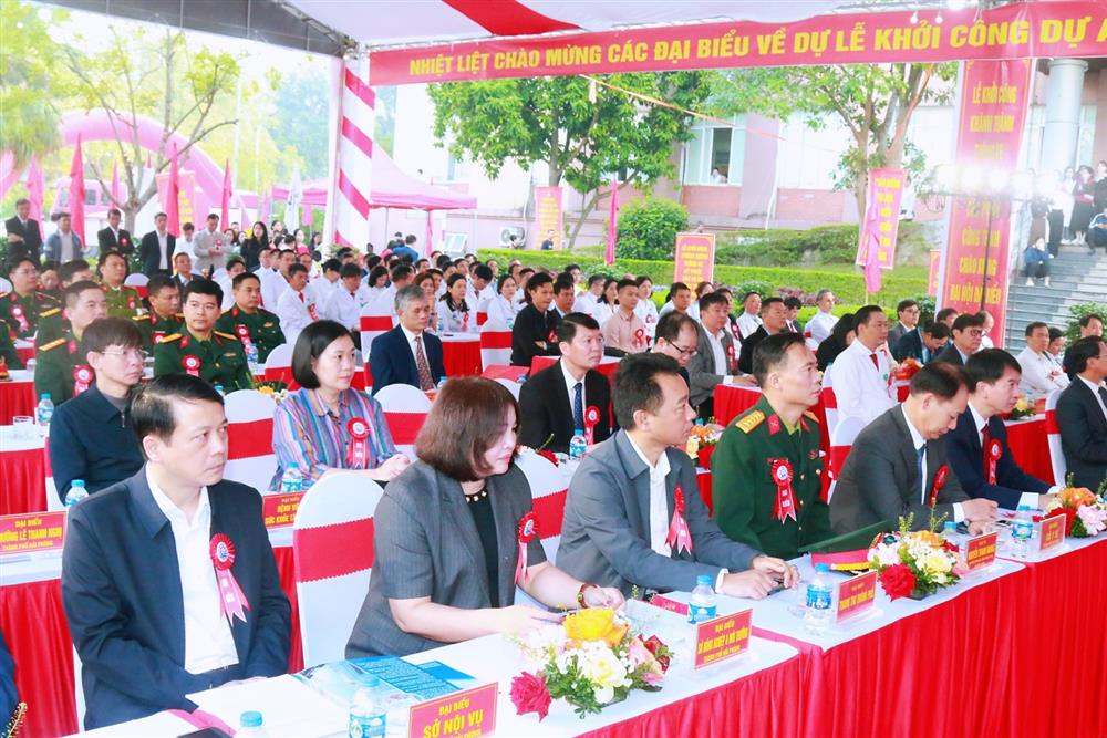 Các đồng chí khách mời tại Buổi lễ khởi công xây mới các khối nhà Bệnh viện Đa khoa Hải Dương