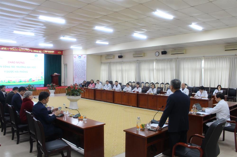 PGS.TS Nguyễn Văn Khải, Hiệu trưởng Trường Đại học Y Dược Hải Phòng phát biểu tại buổi công tác
