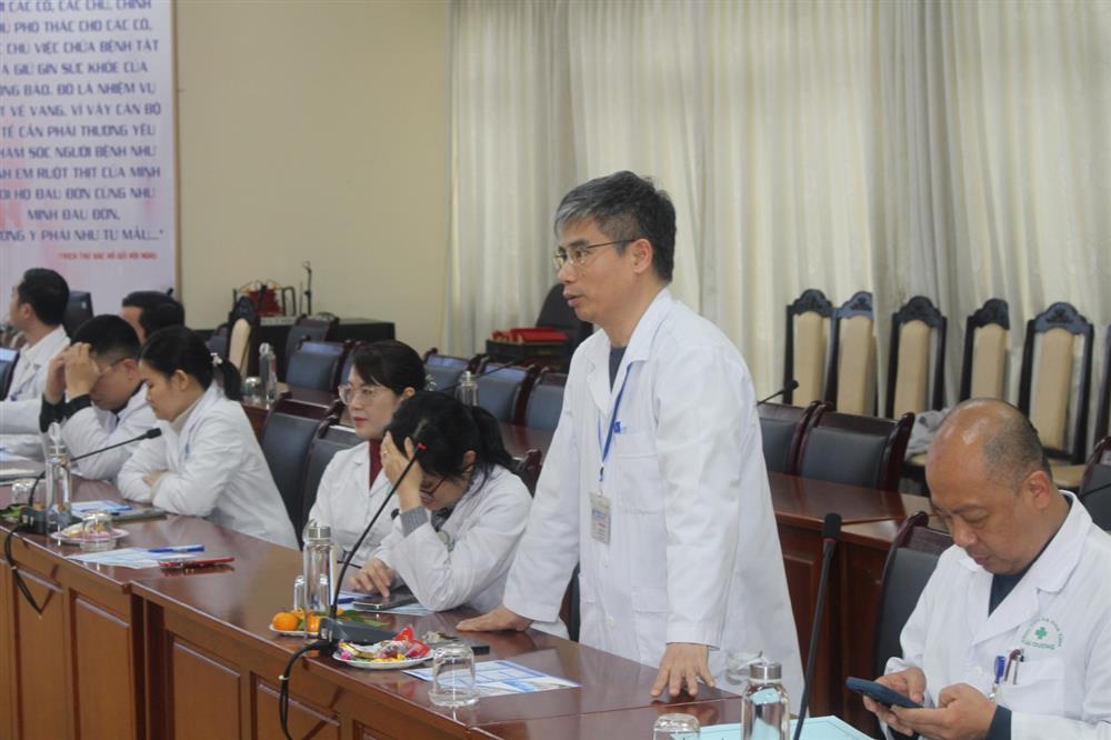 TS.BS Lê Quang Đức, Phó Giám đốc Bệnh viện Đa khoa tỉnh Hải Dương phát biểu tại buổi làm việc