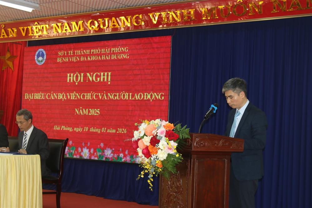 Hội nghị đại biểu, cán bộ, viên chức, người lao động năm 2025 của Bệnh viện Đa khoa Hải Dương khép lại trong không khí đoàn kết – dân chủ – trách nhiệm – hứng khởi, tạo động lực để toàn thể cán bộ, viên chức, người lao động chung sức, đồng lòng xây dựng Bệnh viện Đa khoa Hải Dương ngày càng phát triển, xứng đáng là địa chỉ tin cậy trong công tác chăm sóc và bảo vệ sức khỏe nhân dân.