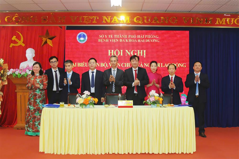 Tham dự và chỉ đạo Hội nghị có PGS.TS Lê Minh Quang – Giám đốc Sở Y tế Hải Phòng, Đồng chí Trần Quang Cảnh – Phó Giám đốc Sở Y tế, Đồng chí Nguyễn Thị Trung Chính – Phó Giám đốc Sở Y tế, Đồng chí Phan Nhật Minh – Phó Giám đốc Bảo hiểm xã hội thành phố Hải Phòng. Về phía Bệnh viện Đa khoa Hải Dương có TS.BS Vũ Minh Hiệp – Giám đốc Bệnh viện, BSCKII Phạm Văn Huấn – Phó Giám đốc Bệnh viện, TS.BS Lê Quang Đức – Phó Giám đốc Bệnh viện, cùng tập thể lãnh đạo các trung tâm, khoa, phòng và toàn thể cán bộ, viên chức, người lao động trong Bệnh viện.