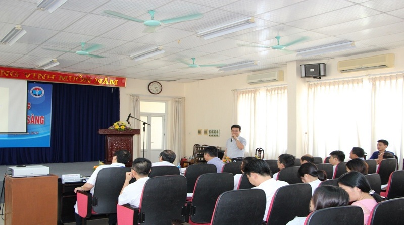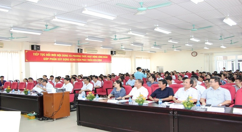 Sau phát biểu khai mạc và chỉ đạo Hội nghị của Tiến sỹ Nguyễn Hữu Thắng Giám đốc bệnh viện, Tiến sỹ Trần Quang Cảnh – Phó Hiệu trưởng trường Đại học kỹ thuật y tế Hải Dương trình bày những nội dung cơ bản của Nghị định 111/2017/NĐ-CP của Thủ tướng Chính phủ quy định về tổ chức đào tạo thực hành trong đào tạo khối ngành sức khỏe.