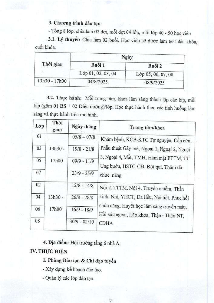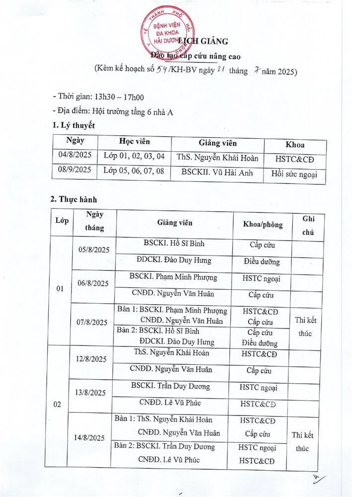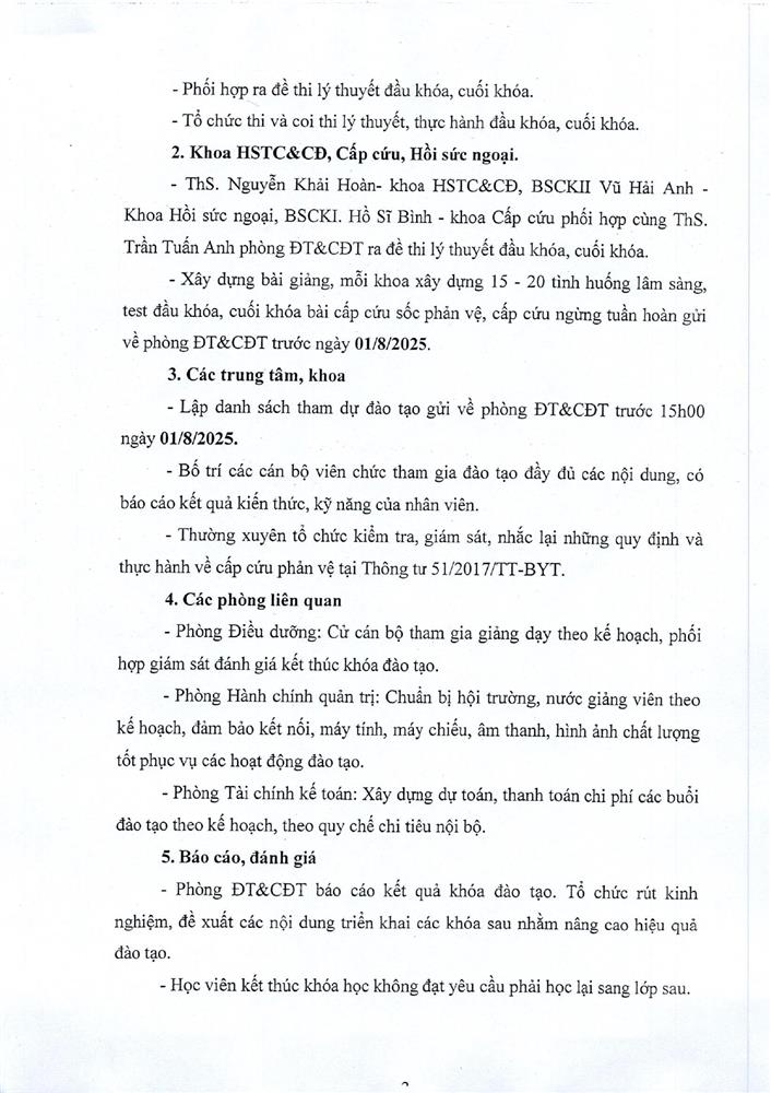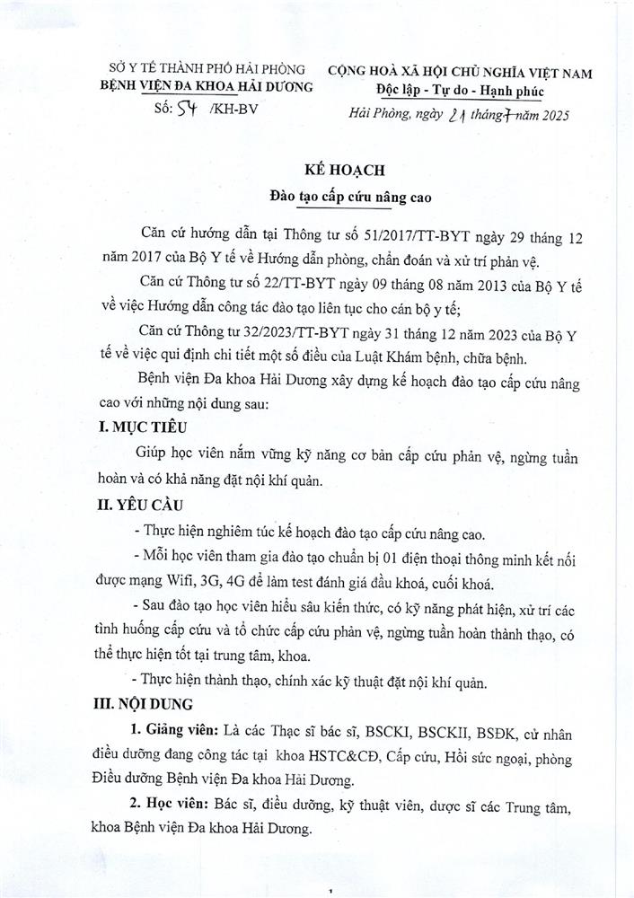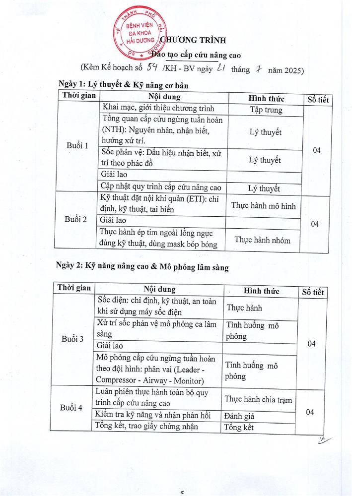 Kế hoạch Đào tạo cấp cứu nâng cao năm 2025