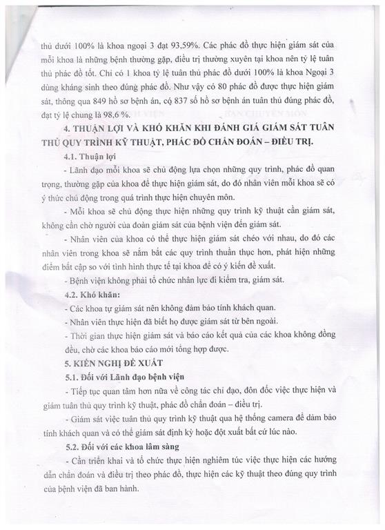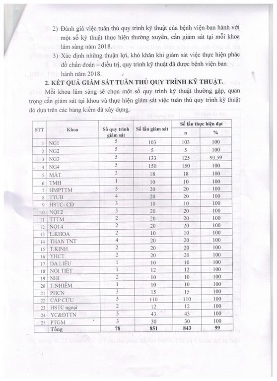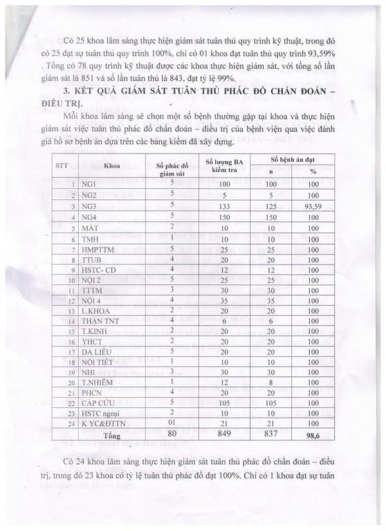 Kết quả triển khai và giám sát tuân thủ quy trình kỹ thuật, phác đồ chẩn đoán, điều trị đã ban hành