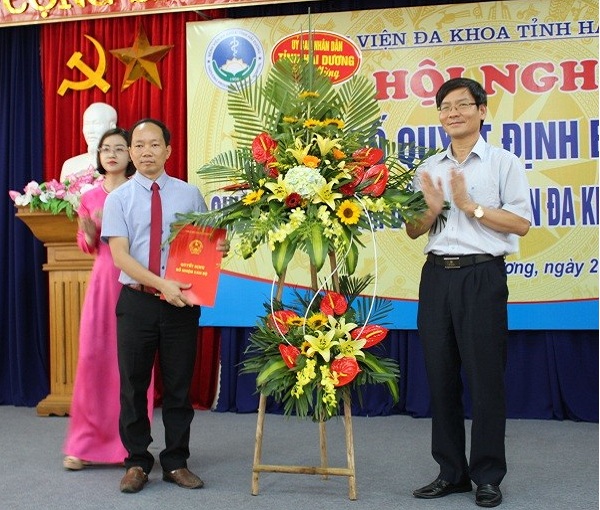 về việc bổ nhiệm chức danh Phó Giám đốc Bệnh viện đối với đồng chí Lê Quang Đức. Tới dự hội nghị có đồng chí Lương Văn Cầu, Tỉnh ủy viên, Phó Chủ tịch UBND tỉnh; đồng chí Vũ Thị Phương, Phó trưởng Ban thường trực Ban Tổ chức Tỉnh ủy; đồng chí Phạm Mạnh Hùng, Tỉnh Ủy viên, Giám đốc Sở Nội vụ và các đồng chí đại diện cho các phòng chức năng của Ban Tổ chức Tỉnh Ủy, Sở Nội vụ, Sở Y tế. Về phía Bệnh viện đa khoa tỉnh Hải Dương có đồng chí Nguyễn Hữu Thắng, Bí thư Đảng ủy, Giám đốc bệnh viện cùng các đồng chí trong Ban Chấp hành Đảng bộ, Ban Giám đốc, Ban Chấp hành Công đoàn, Ban Chấp hành Đoàn thanh niên, Lãnh dạo các trung tâm, khoa, phòng, bộ phận. Tại hội nghị, Đồng chí Lương Văn Cầu thay mặt lãnh đạo UBND tỉnh trao Quyết định bổ nhiệm chức vụ Phó Giám đốc bệnh viện cho đồng chí Lê Quang Đức, tặng hoa và phát biểu giao nhiệm vụ cho Bệnh viện và cá nhân đồng chí Lê Quang Đức.
