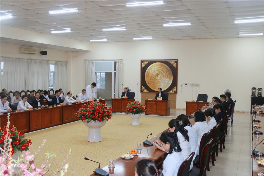 Nhân dịp năm mới và hướng tới Ngày Thầy thuốc Việt Nam 27/2, đồng chí gửi lời chúc sức khỏe, hạnh phúc và nhiều thành công tới toàn thể cán bộ, y bác sĩ, nhân viên bệnh viện; mong muốn đội ngũ tiếp tục phát huy truyền thống ngành y, không ngừng nâng cao chất lượng chuyên môn và tinh thần phục vụ người