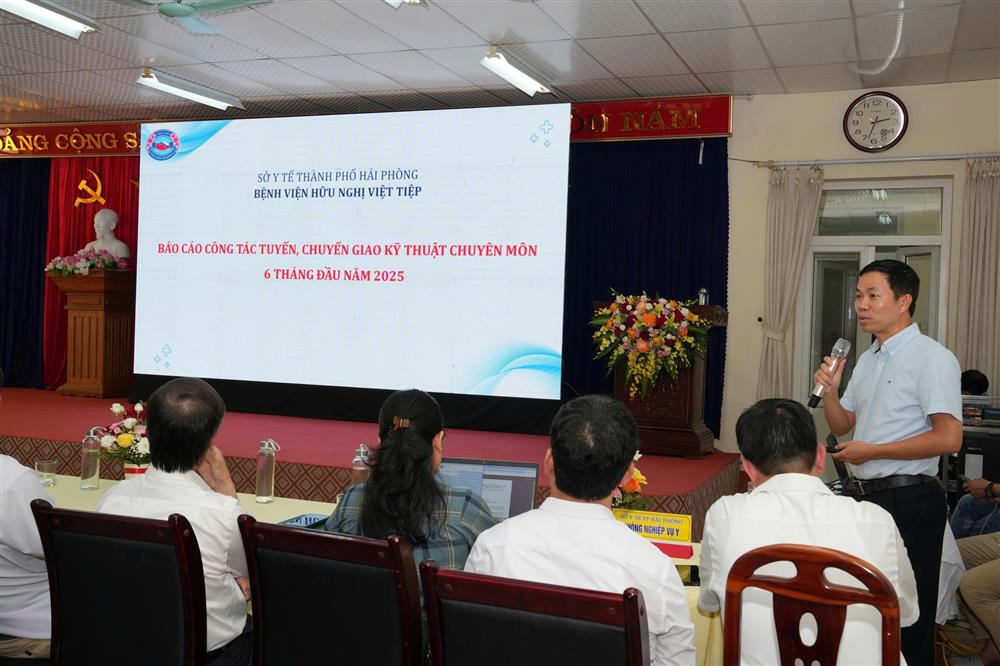 TS.Nguyễn Thế May, Phó Giám đốc Bệnh viện Hữu nghị Việt Tiệp trình bày báo cáo chuyển giao kỹ thuật chuyên môn