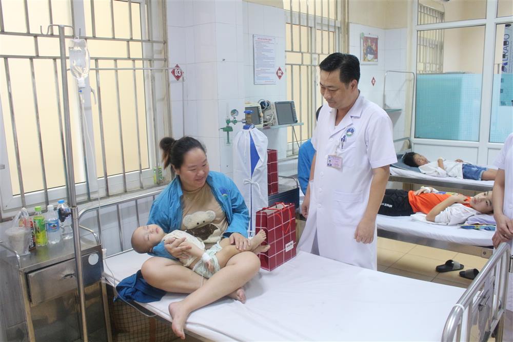 Ths.BSCKII Nguyễn Hoàng Thái - Trưởng khoa Ngoại I, Bí Thư Đoàn Thanh niên Bệnh viện Đa khoa tỉnh Hải Dương thăm và tặng quà Trung thu cho bệnh nhân nhi tại Bệnh viện