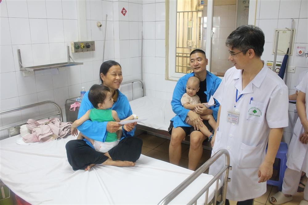 Để bày tỏ sự trân trọng và tạo không khí gần gũi ấm áp, cùng với 55 suất quà được trao trực tiếp đến tay các bệnh nhân nhi, đồng chí Vũ Minh Hiệp cũng gửi những lời chúc tốt đẹp nhất đến các bệnh nhân nhi, chúc các bé mau khỏi bệnh, ngoan ngoãn, luôn cố gắng phấn đấu trong học tập, xứng đáng với niềm tin yêu, mong đợi của cha mẹ, thầy cô.