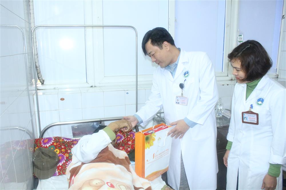 Đồng chí Trần Văn Thuấn tặng quà và hỏi thăm, động viên khích lệ tinh thần bệnh nhân ung thư tại Bệnh viện Đa khoa tỉnh Hải Dương