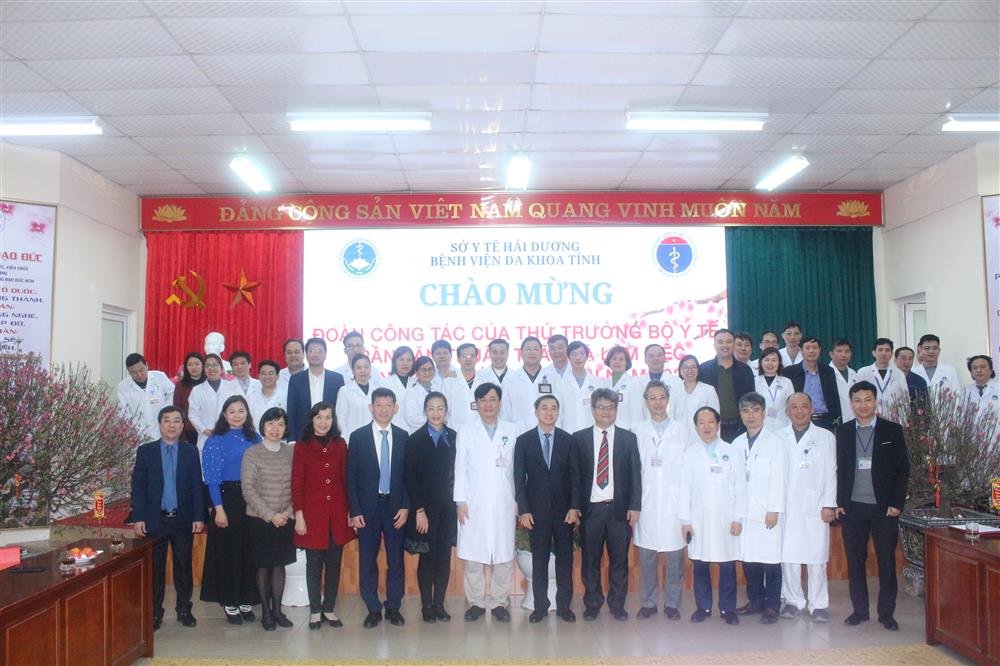 Tiếp đón Đoàn công tác, về phía Sở Y tế Hải Dương có TS Trần Quang Cảnh, Giám đốc Sở; đồng chí Nguyễn Thị Trung Chính, Phó giám đốc Sở; đồng chí Nguyễn Thị Bình, Chủ tịch Công đoàn ngành Y tế Hải Dương. Phía Bệnh viện Đa khoa tỉnh Hải Dương có TS.BS Vũ Minh Hiệp,Quyền Giám đốc Bệnh viện; BS.CKII Phạm Văn Huấn, Phó giám đốc BV; TS.BS Lê Quang Đức, Phó giám đốc BV cùng các lãnh đạo là Trưởng, phó khoa các Trung tâm, Khoa, phòng trong Bệnh viện.
