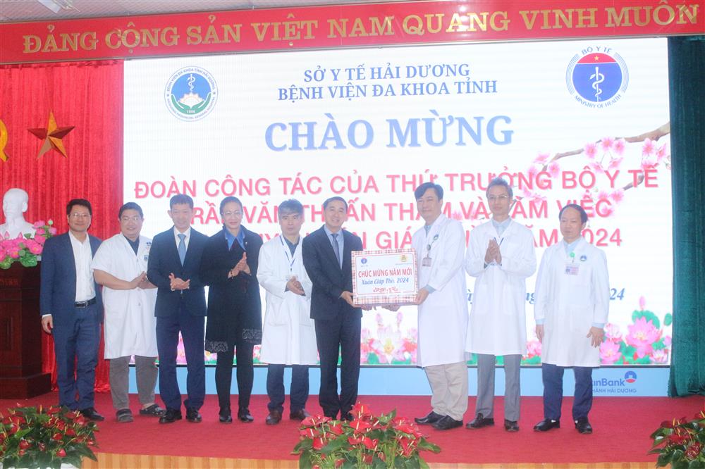 Thứ trưởng Trần Văn Thuấn khen ngợi những thành tích đạt được của Ngành Y tế tỉnh Hải Dương nói chung và Bệnh viện Đa khoa tỉnh Hải Dương nói riêng. Đồng chí đề nghị Bệnh viện luôn giữ vững vai trò là bệnh viện tuyến cuối của tỉnh Hải Dương, mang lại chất lượng khám chữa bệnh và phục vụ người dân trong tỉnh một cách tốt nhất, đặc biệt đảm bảo sẵn sàng ứng phó với mọi tình huống dịch bệnh, cấp cứu tai nạn, thương tích, ngộ độc thực phẩm trước, trong và sau dịp Tết nguyên đán 2024.Cũng nhân dịp tết cổ truyền 2024, Đồng chí Thứ trưởng chúc toàn thể cán bộ viên chức người lao động tại Bệnh viện có một dịp tết thật vui tươi, mạnh khỏe, luôn giữ vững tinh thần trách nhiệm, đảm bảo hoàn thành công tác khám chữa bệnh, chăm sóc nhân dân. Đồng chí cũng đã trao 10 suất quà Tết cho các Trung tâm, khoa điều trị có thành tích nổi bật trong công tác khám chữa bệnh tại Bệnh viện.
