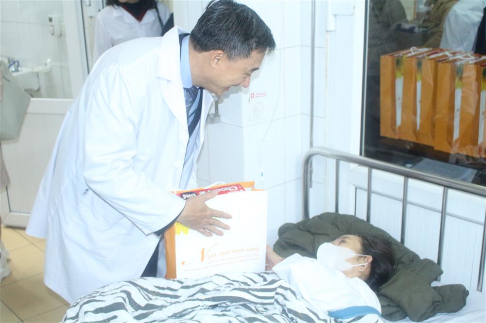 Đồng chí Thứ trưởng Trần Văn Thuấn cùng lãnh đạo của Đoàn công tác Quỹ Ngày mai tươi sáng và Sở Y tế, Ban lãnh đạo Bệnh viện, trực tiếp thăm hỏi và trao từng suất quà cho từng bệnh nhân, động viên, khích lệ tinh thần, giữ vững tâm lý, chiến thắng bệnh tật cho bệnh nhân và người nhà bệnh nhân.